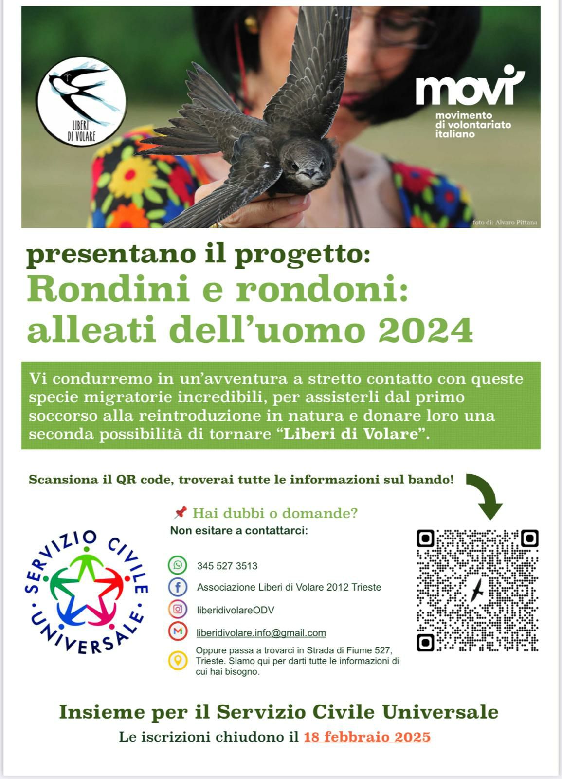 Se ami il mondo degli animali il MoVI – Movimento di Volontariato Italiano ti dà l’opportunità di svolgere un anno di #ServizioCivileUniversale a Trieste con Associazione Liberi di Volare 2012 Trieste