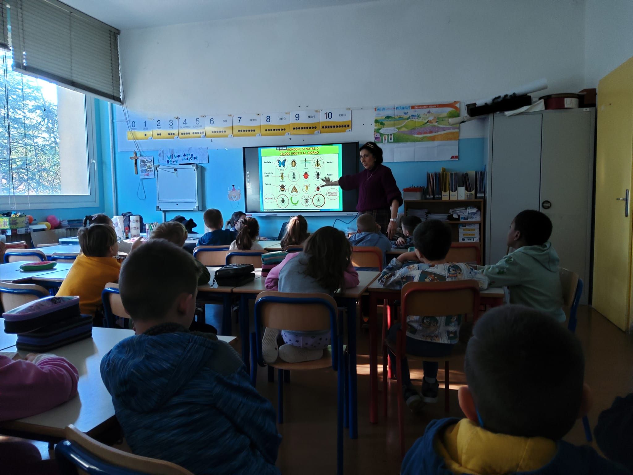 Insieme alla nostra collaboratrice Ginevra Cesca, una “accattivante” presentazione su biodiversità, rondoni, rondini e balestrucci e insetti impollinatori, condita da video e storie per piccoli bambini!..un vero successo!